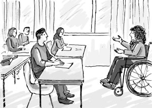 - האיור המלווה מופיע בחלקו השמאלי של הצג, והוא נועד לתת הֶקשר כללי לקטע השמע - למשל, לשקף את מין הדובר או הדוברים. האיור אינו כולל מידע על התשובות לשאלות.